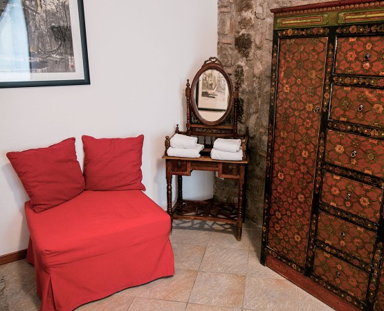 La wall room si trova in un appartamento, composto da tre camere da letto, posto al piano, senza ascensore, nel cuore del centro storico di Viterbo ( no ztl ).Tutte le maggiori attrazioni turistiche e storiche, come il quartiere medievale San Pellegrino, le trattorie, pizzerie, ristoranti, la stazione ferroviaria di Viterbo Porta Romana e il rettorato dell'Università degli Studi della Tuscia, sono raggiungibili a piedi ( entro 500 metri). La camera può ospitare fino a quattro ospiti in modo confortevole. Il bagno è condiviso con un'altra camera ed è dotato di cabina doccia con idromassaggio. L'arredamento originale di pregio è costituito da pezzi originali fine epoca imperiale cinese, ed è stato disposto seguendo la regole del feng shui, generando una apprezzabile sensazione di armonia e tranquillità.